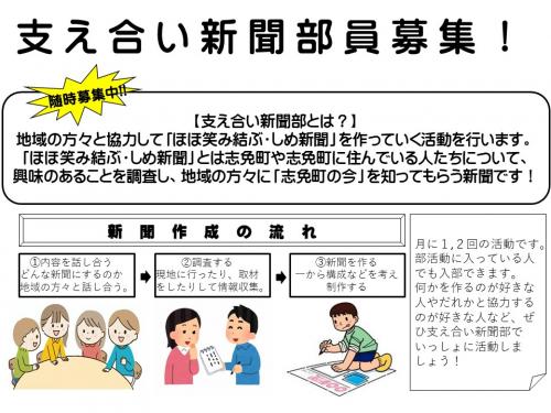 2024年4月22日(月)、支え合い新聞部の【ほほえみ結ぶ・しめ新聞 第4号】の企画会議が始まりました。
