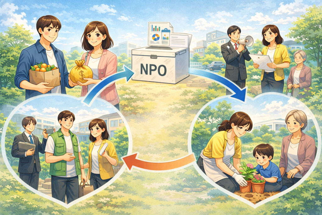 NPOは「助け合い」を感情ではなく仕組みに変える存在です。